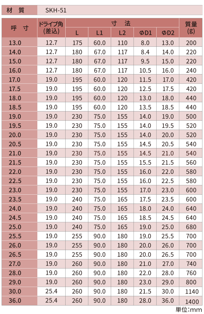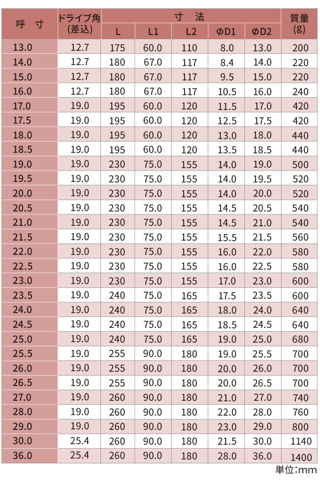 インパクトレンチドライブ角(差込角)□25.4mmに直接装着して使用